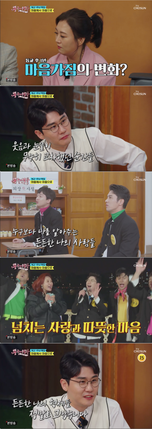 영탁은 “덕분에 예능공포증이 사라졌다. ‘나 혼자였다면 극복할 수 있었을까?’ 혼자 떨어졌었더라면 정말 힘들었던 1년이 됐을 것 같다. 근데 고마운 우리 형제들 감사합니다”라며 멤버들을 향한 진한 애정을 드러냈다.