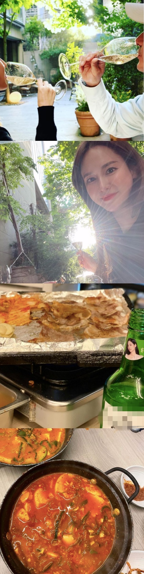 공개한 사진 속에는 유명 냉삼 식당에서 찍은 먹음직스러운 삼겹살, 찌개의 모습과 안정환-이혜원 부부가 다정히 와인을 마시고 있는 모습이 담겨져 있다. 사진에서도 가족의 단란함이 묻어난다.