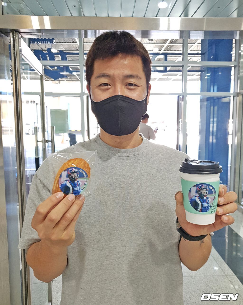 강민호는 출근길에 커피 트럭을 보자마자 깜짝 놀라며 인증샷을 찍는 등 소중한 추억을 간직했다. /what@osen.co.kr