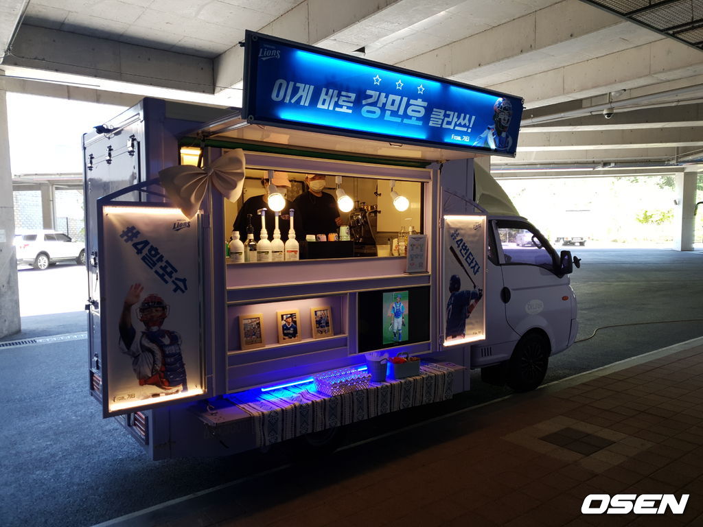 9일 대구삼성라이온즈파크 1층 로비 입구에 커피 트럭이 떴다. 보낸 이는 강민호(삼성)의 열혈 팬 '기티'.