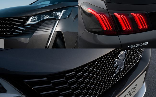디자인은 전면부가 확 바뀌었다. 차체 및 헤드램프와의 연결성을 강조한 일체형 프레임리스 그릴을 채택했고, 사자의 송곳니를 형상화한 새로운 푸조의 시그니처 주간주행등(DRL)을 달았다. 안개등을 포함한 새로운 디자인의 풀 LED 헤드램프를 탑재했다. 범퍼 하단의 양 끝에는 유광 블랙으로 강조된 사이드 스쿱을 적용해 스포티함을 강조했다. 보닛 중앙에는 ‘3008’ 엠블럼을 추가했다.