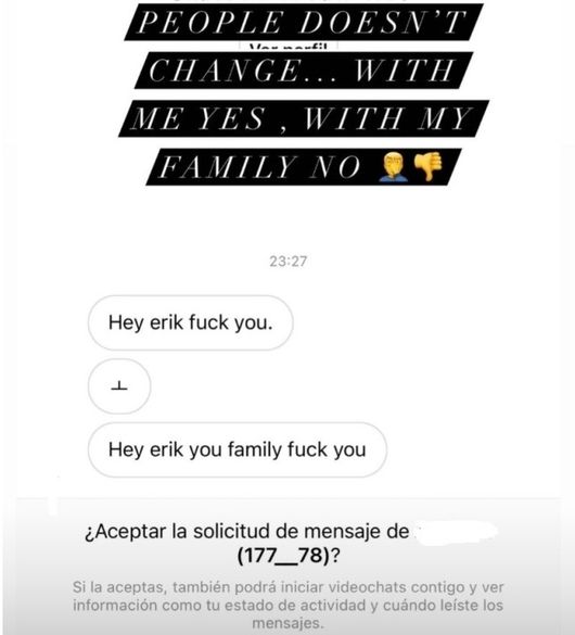 공개된 메시지에는 영어로 "라멜라 XXXX. 너의 가족도 XXXX"라는 심한 욕설이 담겨있다.