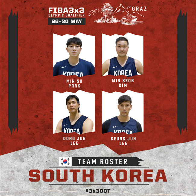 대한민국농구협회는 11일 "26일부터 30일까지 오스트리아에서 열리는 국제농구연맹(FIBA) 올림픽 3대3 농구 예선 대회에 나갈 국가대표로 이승준, 이동준, 김민섭, 박민수를 선발했다. 김동우와 하도현은 예비엔트리 2인에 이름을 올렸다”고 밝혔다.