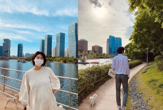 공개된 사진 속에는 임산부 나비가 남편, 그리고 반려견을 데리고 외출한 모습이 담겨 있다. 나비는 출산 이후에는 당분간 개인적인 시간이 없다는 조언을 듣고 집 근처로 산책을 나왔고, 남편의 뒷모습을 남기면서 "몸무게가 자꾸 줄어요"라며 고생하는 남편에게 고마움을 표하기도 했다.