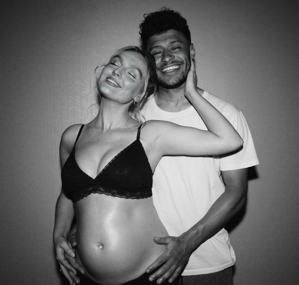 체임벌린은 12일 자신의 SNS에 여자친구 페리 에드워즈(28)와 찍은 사진을 올렸다. 에드워즈는 임신으로 만삭이 된 배를 그대로 드러냈다.
