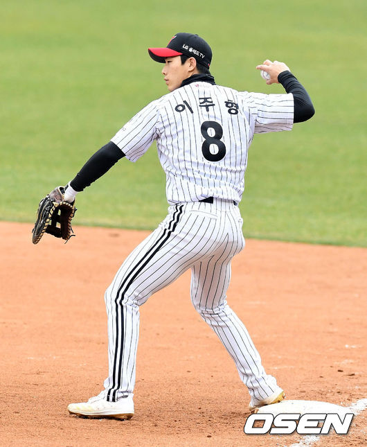 류 감독은 "선수 본인이 2루수를 완전히 포기하고 싶지 않다고 했다. 외야와 1루 그리고 2루를 모두 다 준비하고 싶다고 했다. 내외야 유틸리티로 준비하면 1군에서 활용법이 많아지고, 콜업이 될 기회가 많지 않을까 생각하더라"며 "내 생각도 그렇다. 단장님도, 2군 감독도 면담한 내용에 수긍했다"고 말했다.