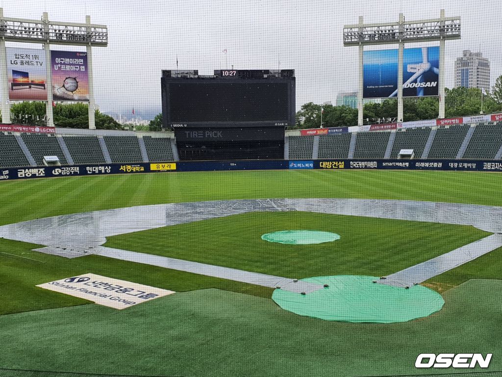 잠실구장은 방수포가 덮혀 있고 봄비가 계속해서 내리고 있다. 일기 예보에 따르면 저녁까지 강수 확률 60~70%의 비 예보가 있다. 오후 3시 이후로는 강수량도 10~19mm로 많은 편이다.