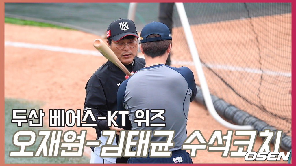 두산 오재원은 KT 김태균 코치를 붙잡고 타격 자세에 관한 질문을 쏟아냈다. 비록 승부를 겨뤄야하는 상대 선수지만 김태균 수석코치는 직접 자세도 잡아주며 조언을 아끼지 않았다. 두 사람은 김태균 수석코치가 두산 베어스의 주루 코치 시절 연을 쌓았다. 이제는 서로 다른 팀에서 다른 목표를 달성하기 위해 경쟁을 펼치고 있지만 서로에 대한 애정만큼은 식지 않았다. /ksl0919@osen.co.kr