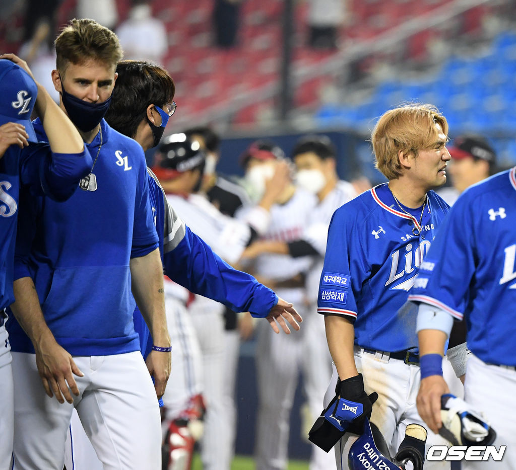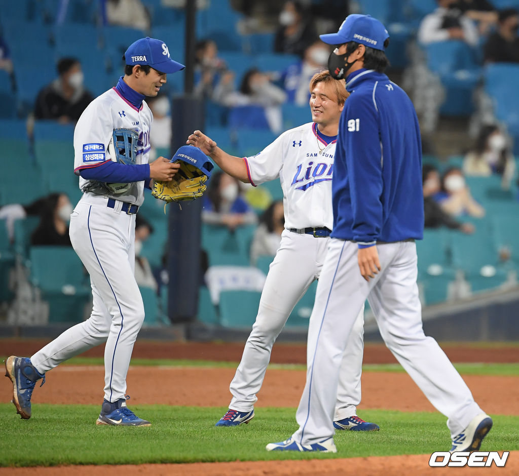 기나긴 침묵을 깬 김상수는 그 동안 마음 고생을 보여주듯 안타를 날린뒤 미소를 활짝 보였다. 동료들도 김상수의 마음고생을 잘 알기에 이닝종료 후 한명씩 다가가 김상수를 축하해줬다.