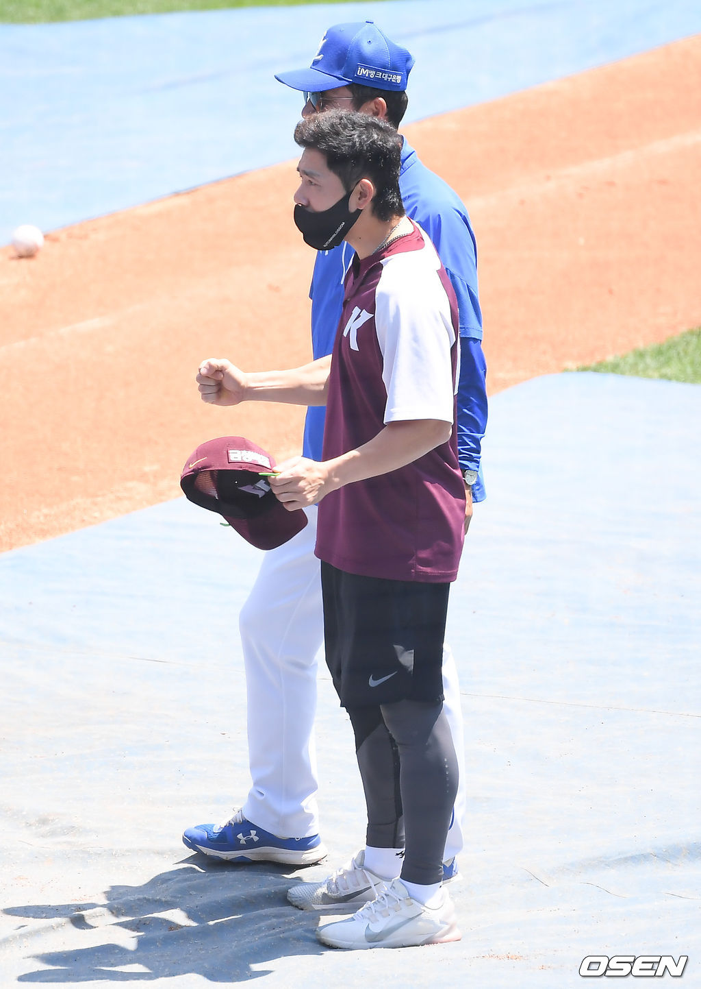 다른 팀 선배 이용규의 적극적인 응원을 받으며 타격 훈련 "상수야~ 힘내~"
