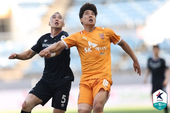 후반 43분 주민규가 다이빙 헤딩슛을 했지만 골대를 살짝 빗나갔다. 주민규는 후반 44분에도 왼발슈팅을 날렸다. 후반 46분 이규성의 헤딩슈팅도 골키퍼에게 막혔다. 막판 공세에도 불구 결국 두 팀은 2-2로 경기를 마쳤다. / jasonseo34@osen.co.kr