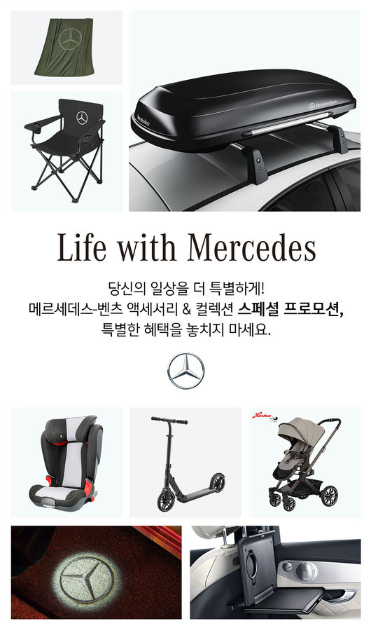 메르세데스-벤츠 액세서리 & 컬렉션 담당자는 “이번 Life with Mercedes 프로모션을 통해, 많은 고객 분들이 원하시는 혜택을 받아 가시기를 바란다”며, “앞으로도 고객 여러분들께 더 가까이 다가갈 수 있는 프로그램을 선보이기 위해 노력하겠다”고 전했다.