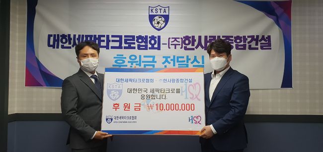 이번 후원금 전달식을 통해 한사랑종합건설은 대한민국 세팍타크로의 저변확대와 국가대표팀의 경기력 향상을 위해 1000만 원을 후원했다. 문경호 대표는“앞으로도 세팍타크로 종목의 활성화와 발전을 위해 더욱 노력하겠다”고 밝혔다.
