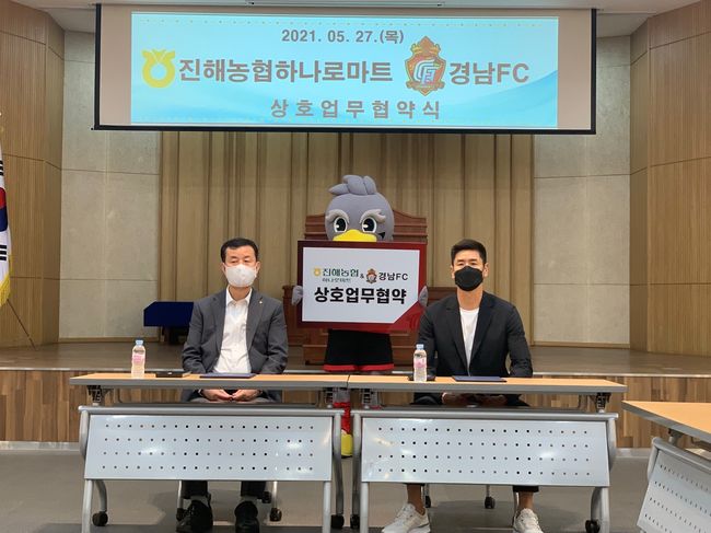 경남FC(대표이사 박진관)가 27일 오후 4시 진해농협 대강당에서 진해농협 하나로마트(이하‘진해농협’)와 지역사회 홍보를 위해 상호업무협약을 체결했다.