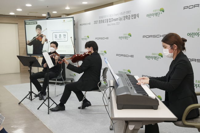 이 날 시상식에는 포르쉐코리아 홀가 게어만 대표, 초록우산 어린이재단 이제훈 회장, 드림 업 후원 학생과 학부모 등이 참석해 장학금과 장학증서를 전달했다. ‘포르쉐 드림 업’ 장학생이 비올라를 연주하는 시간도 가졌다.