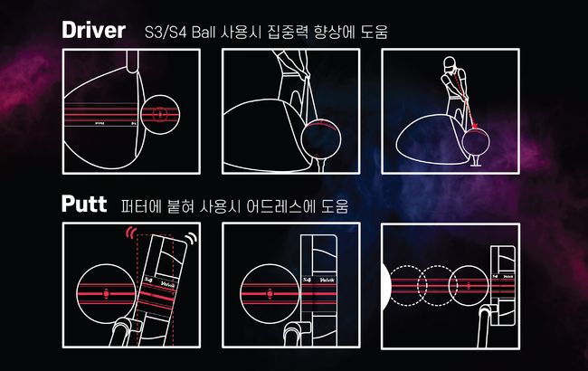 볼빅은 이 제품에 ‘레슨해주는 골프공’이라는 별칭을 붙였다. 티잉 그라운드와 퍼팅 그린에서 티샷의 에이밍과 퍼팅 정렬이 가능하기 때문이다. 드라이버 헤드의 크라운과 퍼터에 스티커만 붙이면 준비는 끝난다.