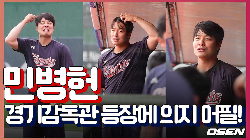 몸을 푼 민병헌은 계속해서 내리는 비에 우천 취소를 우려했다. 임채섭 경기감독관이 등장하자 게임에 대한 의지를 드러내기도.