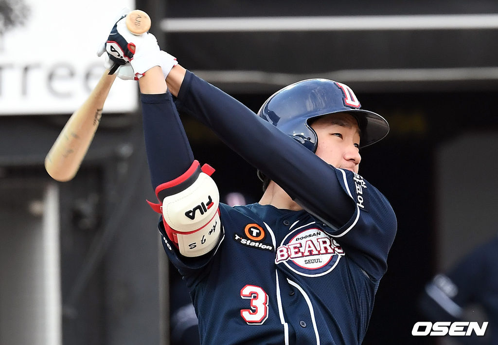 김태형 감독은 홈런을 치고 홈으로 들어온 안재석을 향해 아낌없는 박수를 보냈다. 마지막까지 안재석의 엉덩이를 두드리며 기쁜 마음을 감추지 않았다.