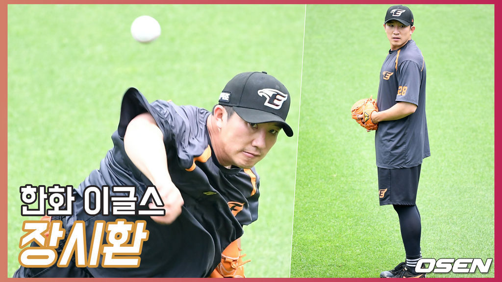 최근 부진에서 벗어나 상승세를 보여주고 있는 한화 장시환이 22일 오후 삼성과의 경기를 앞두고 그라운드로 나와 훈련을 하고 있다.