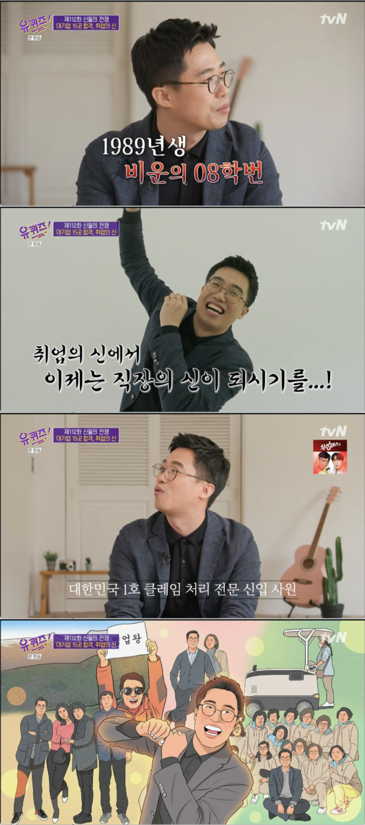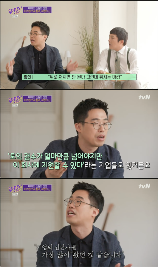 우선 취업의 신 황인 자기님이 등장했다. 6개월만에 15개의 대기업에 취업을 한 이력을 가졌다고. 황인 자기는 “스물여덟 군데 지원했고 열다섯개 합격을 했다. 89년생이다. 비운의 08학번이다”라고 말했다.