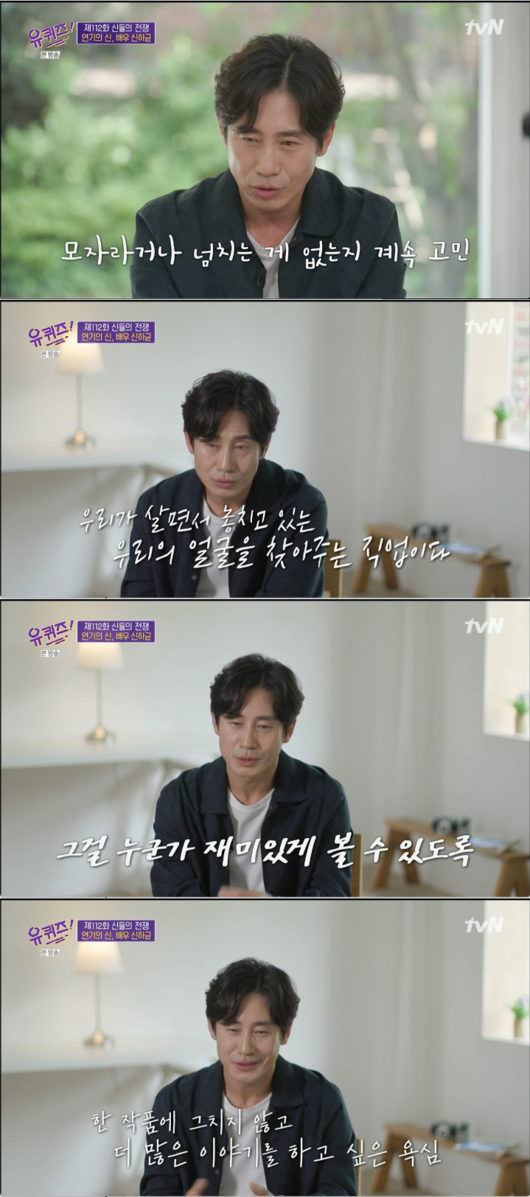 이어 신하균은 “어떤 선배님께서 하신 말씀인데, ‘배우는 우리가 살면서 놓치고 있는 우리의 얼굴을 찾아주는 직업이다’라는 말을 하셨다”라고 직업에 대한 신념을 전했다.