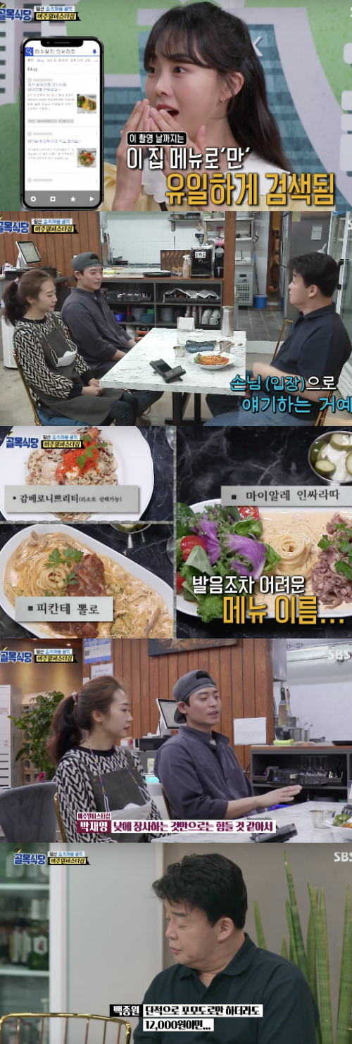 이날 연예인 연습생 출신인 부부가 운영하는 비주얼 파스타집을 방문했다. 김성주는 “독특한 이름의 ‘마이알레 인싸라따’가 기억에 남는다”고 언급, 앞서 이 파스타는 가격이 만 7천원이라 했고 백종원은 “저 사람들 제 정신이냐”며 혹평한 바 있다.