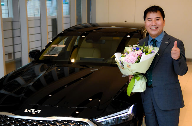 기아는 오경렬 영업부장에게 상패와 포상 차량 K9을 수여했다.