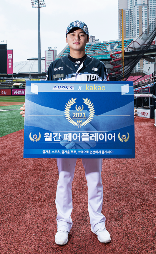 스포츠토토와 카카오가 공동으로 진행하는 ‘2021 KBO리그 월간 페어플레이어’ 캠페인은 불법 스포츠도박 근절에 대한 메시지를 전하는 한편, 정정당당하게 경기에 임하는 공정한 경기 문화를 정착시키기 위해 기획됐다.
