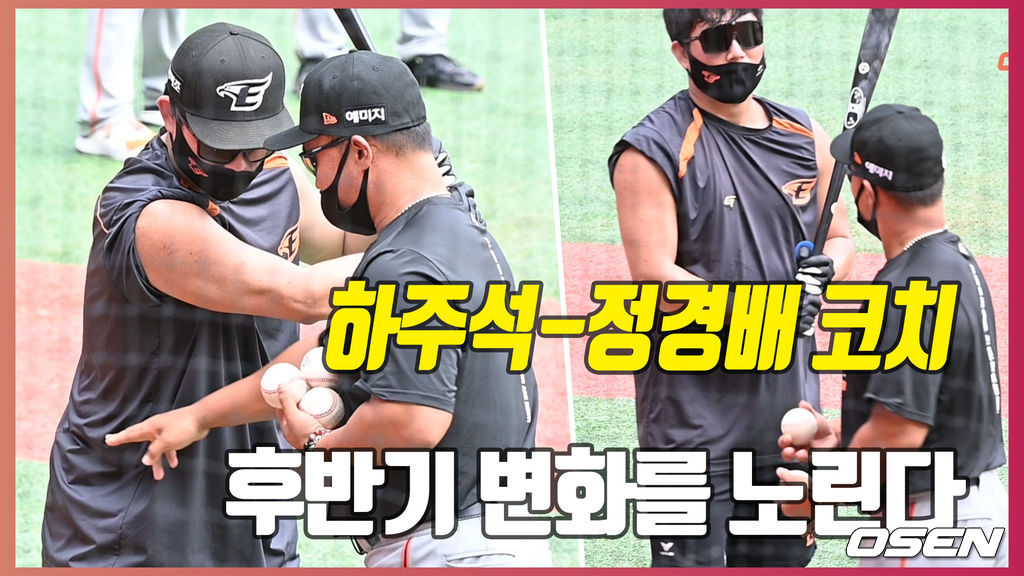 한화 하주석이 정경배 코치와 타격 훈련을 하고 있다. 2021.08.06/youngrae@osen.co.kr
