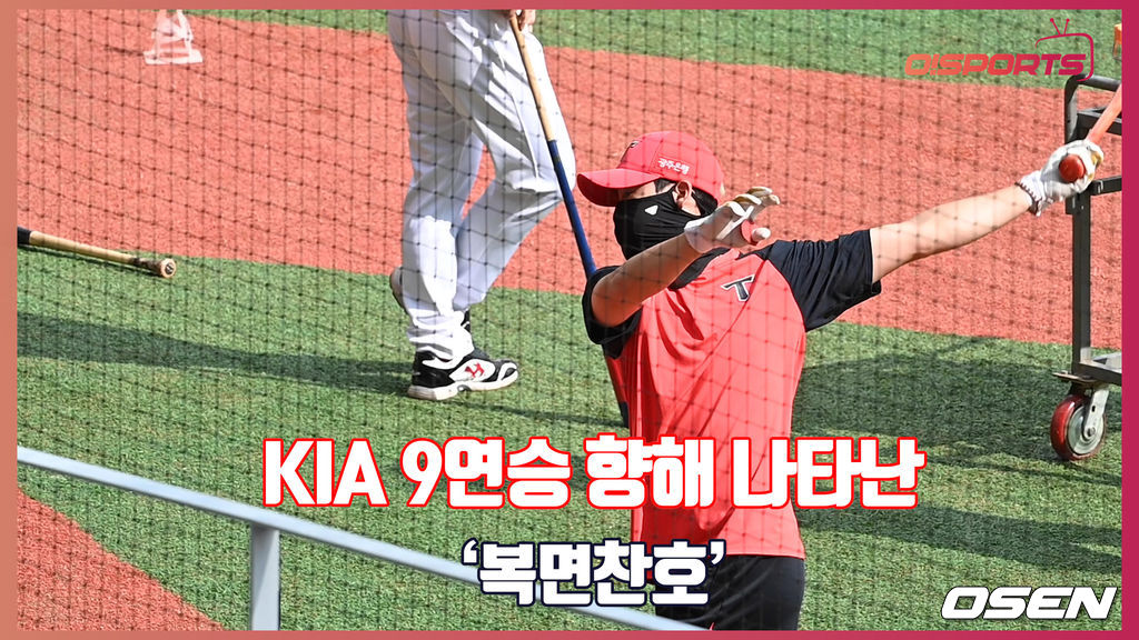 KIA 8연승 일등공신 박찬호가 복면을 쓰고 훈련에 나섰다.