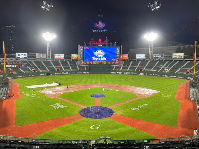 사직구장에 갑작스럽게 폭우가 쏟아지면서 1회에 경기가 중단됐고 약 한 시간을 기다린 끝에 우천 노게임이 선언됐다.