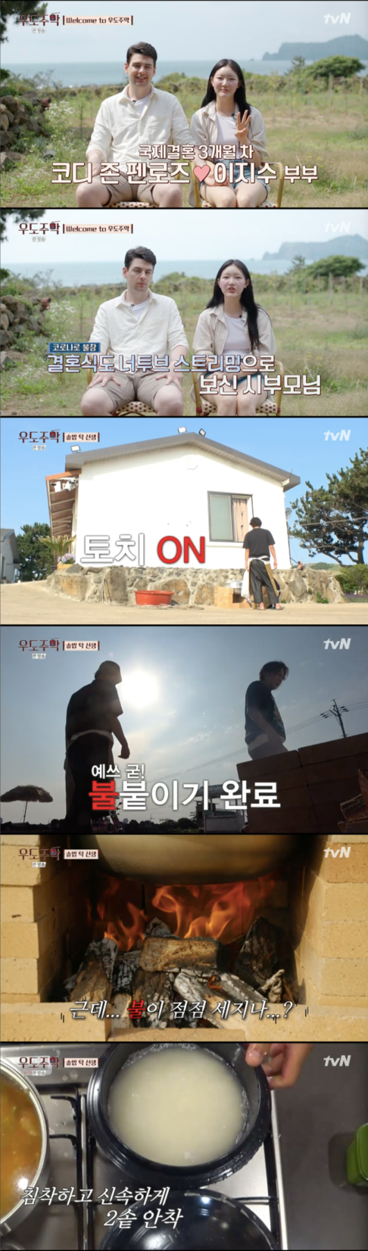 국제결혼 3개월차 부부 신혼부부가 도착했다. 아내는 한국인 남편은 외국인이었다. 유태오는 이들을 반갑게 맞았다. 아내는 “코로나로 시부모님을 한 번도 못 만났다. 결혼식도 유튜부 스트리밍으로 보셨다. 방송을 통해서라도 잘 사는 모습을 보여드리고 싶어서 우도주막에 출연하게 됐다”고 말했다.