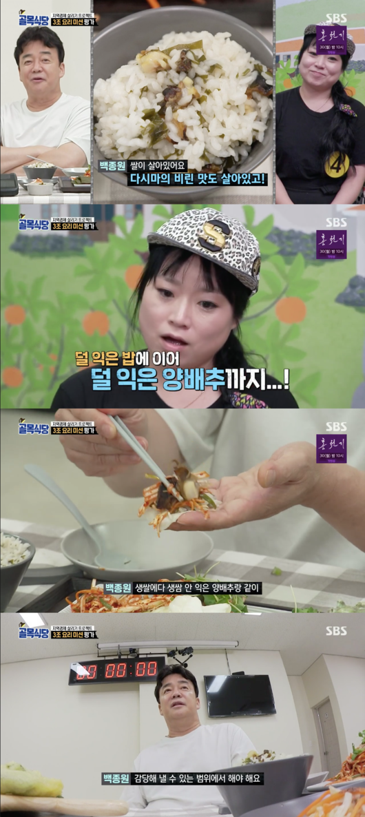 백종원은 “이게 밥이야? 죽을 밥처럼 보이게 푼거다. 죽은 차라리 익기라도 했겠다”라며 냉정하게 말했다. 백종원은 “생쌀로 밥을 하면 어떤 느낌인지 알려주는 느낌이다. 쌀이 살아있다. 다시마의 비린 맛도 살아있고. 뿔소라가 아깝다”라고 혹평했다.