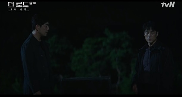 25일 방송된 tvN 수목드라마 '더 로드 : 1의 비극'에서는 백수현(지진희)이 심석훈(김성수)를 만나는 모습이 그려졌다.