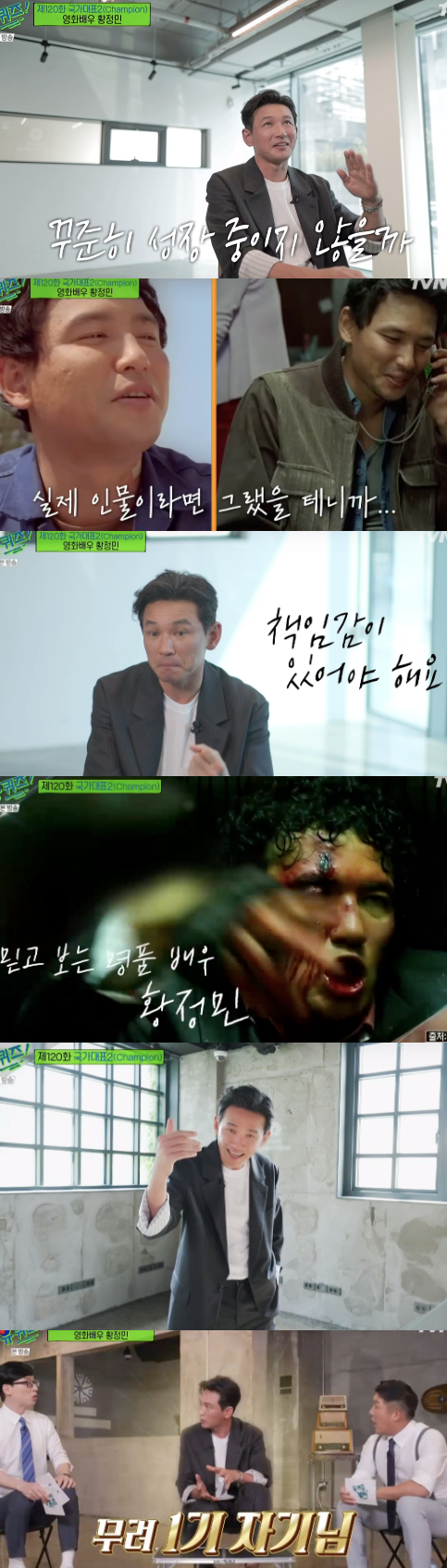 연기 국가대표로 배우 황정민이 출연했다. 유재석은 “지진희, 조승우 이어 3대장 수집의 피날레, (굴욕사진의) 황조지 퍼즐이 완성된다”고 반가워했다.