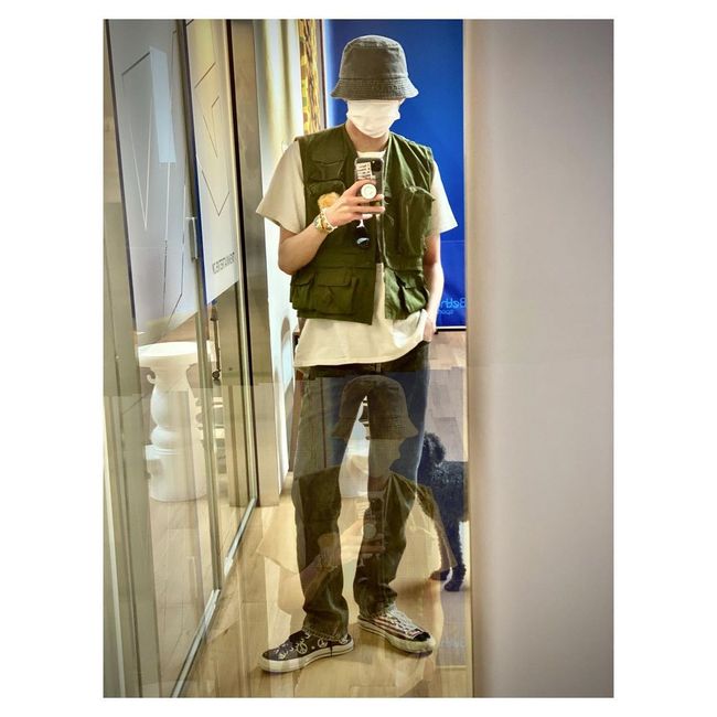 공개한 사진 속 강승윤은 모자와 마스크로 얼굴 전부를 가린 모습, 한 손을 주머니에 찔러넣은 그의 포즈에서 힙함이 느껴진다.