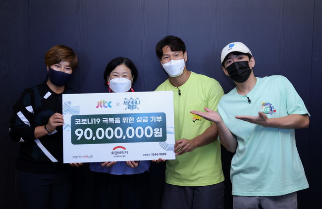 26일 JTBC 예능 프로그램 '회원모집-세리머니 클럽(이하 세리머니 클럽)' 측은 1억여 원의 기부금을 희망브리지 전국재해구호 협회, 동물복지업체 카라에 전달했다고 밝혔다.