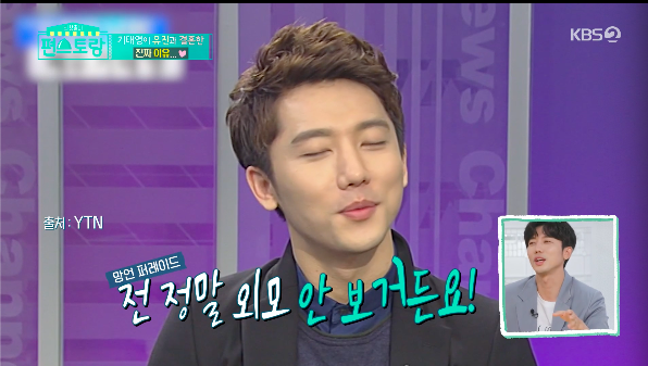 기태영은 “원래 낯을 많이 가린다.”며 민망해했다. 이어 그는“뉴스에 출연해 유진의 외모를 보고 결혼한 게 아니라는 이야기를 했다가 욕이란 욕은 다 먹었다”고 털어놨다.