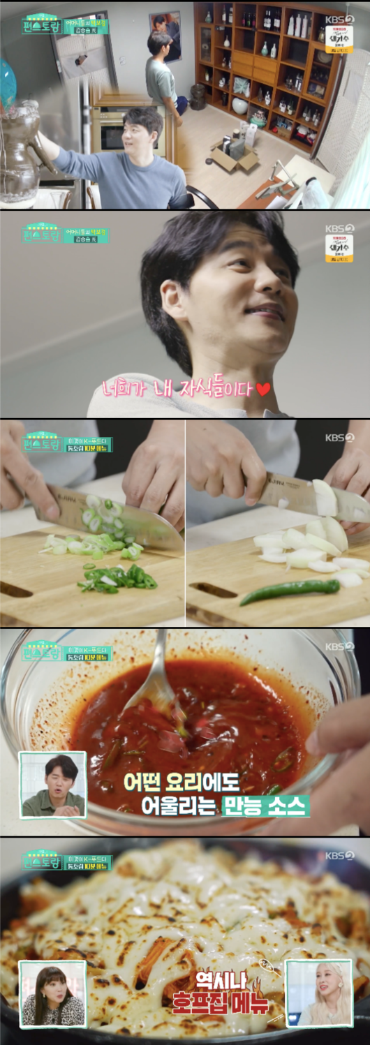 김승수는 불닭소스를 집에서 만들었다. 소스에는 고춧가루, 고추장, 올리고당, 설탕, 다진마늘, 간장, 물, 참기름, 후추 등이 들어갔다. 그는 “어떤 요리에 넣어도 맛있는 소스다”라고 말했다. 이어 “아는 맛 중에 최강”이라며 감탄했다.
