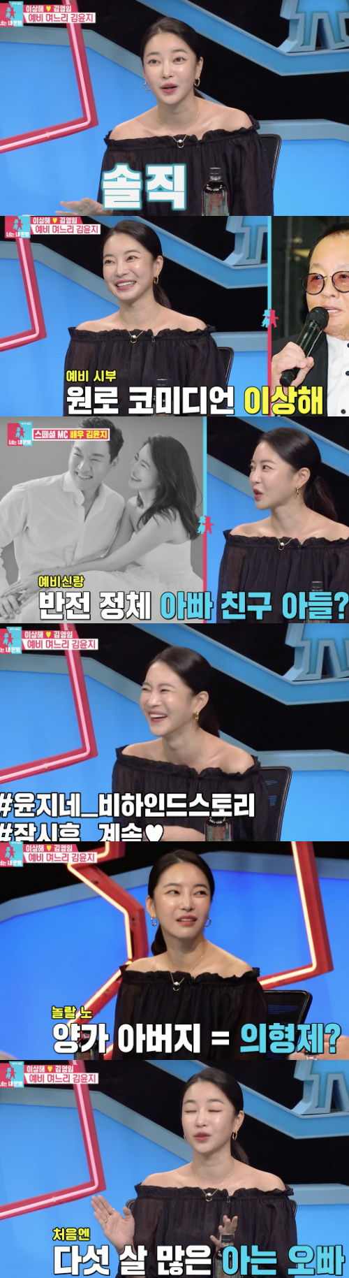 이날 다가오는 9월 26일에 결혼예정이라는 김윤지는 MC들은 예비신부인 김윤지에게 예비신랑이 아버지 친구의 아들이라는 소문에 대해 언급, “심지어 예비 시아버지가 원로 코미디언 이상해, 시어머니가 국악계 대모 김영임이다”며 놀라워했다.