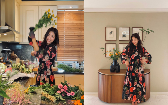 공개된 사진 속에는 색색의 꽃을 들고 환한 미소를 지으며 꽃꽂이를 하고 있는 기은세의 모습이 담겼다. 주방 가득 들어찬 꽃들과 플라워 패턴 원피스까지 꽃에 둘러싸인 와중에도 돋보이는 기은세의 미모가 시선을 사로잡는다.