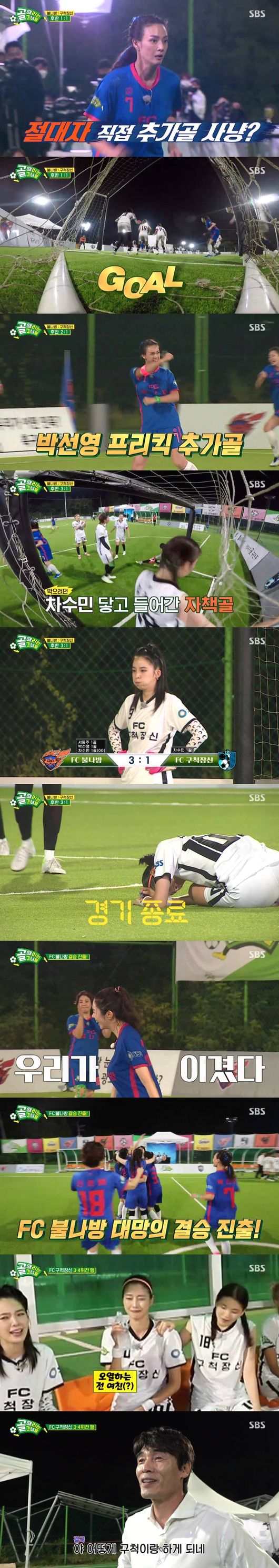 SBS ‘골 때리는 그녀들’의 ‘불나방’이 대망의 결승 진출에 성공하며 동시간대 가구시청률 1위를 거머쥐었다.