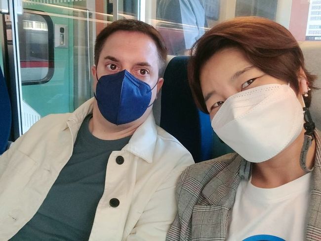 김혜선은 3일 오전 자신의 인스타그램에 "4시에 일어나서 바로 앞에서 기차 놓친 거 실화?? ㅎㅏㅎㅏㅋㅋㅋㅋ 남편 첫 방송 촬영하러 가는 길. 매니저 역할 잘하고 오겠습니돠아~ #독일스테판 #독일남편 #개그우먼김혜선 #마산 #기차"라는 글과 함께 사진을 게재했다.