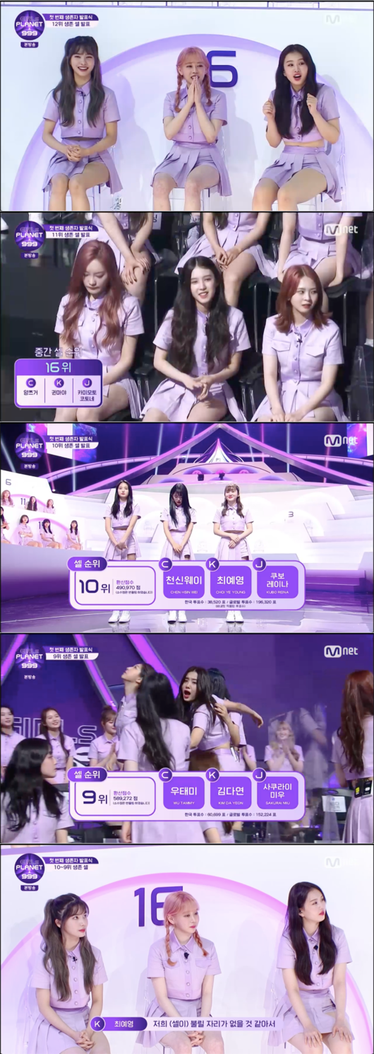 1위 셀 발표를 앞두고 여진구는 “1위 셀 후보에 오른 두 셀을 만나보겠다”라고 말했고, 첫 번째 1위 후보 셀은 최유진, 차이빙, 메이. 두번 째 1위 후보 셀은 션샤오팅, 카와구치 유리나, 서영은.