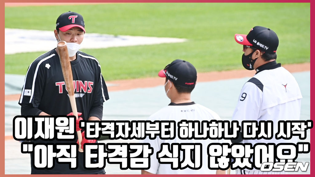 이재원은 5일 오후 서울 잠실구장에서 열리는 2021 신한은행 SOL KBO리그 KT 위즈의 홈경기를 앞두고 타격훈련을 가졌다.