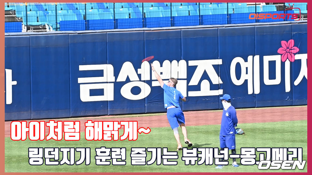 외야 왼쪽 끝에서 중앙으로 달려나가는 서로를 향해 링을 던진 뷰캐넌과 몽고메리. 달리기를 통해 지구력을 높이고 링을 받아내는 순간의 집중력-순발력 단련을 위해 진행된 이 훈련에서 두 외인선수는 아이처럼 해맑은 미소를 내보였다.