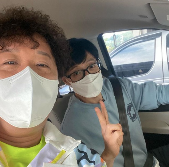 사진 속 두 사람은 자동차를 함께 타고 있다. 특히 유재석이 운전석에, 정준하가 그 옆자리 조수석에 앉아있어 시선을 모았다.