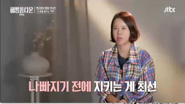 맛있게 식사를 마친 백지영은 “아 배불러”하며 소파에 누웠다. 백지영은 “(건강이) 안 좋아진 다음에 회복하는 건 어렵다. 나빠지기 전에 유지해야 한다”라고 설명했다.