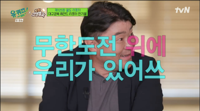 ‘싱싱고향별곡’의 시청률에 대해 한기웅은 “유재석씨가 기분 나빠하실 수도 있지만 '무한도전'이 사랑을 받을 때 대구, 경북에는 '무한도전' 위에 우리가 있었다”라고 말해 웃음을 즈아냈다.