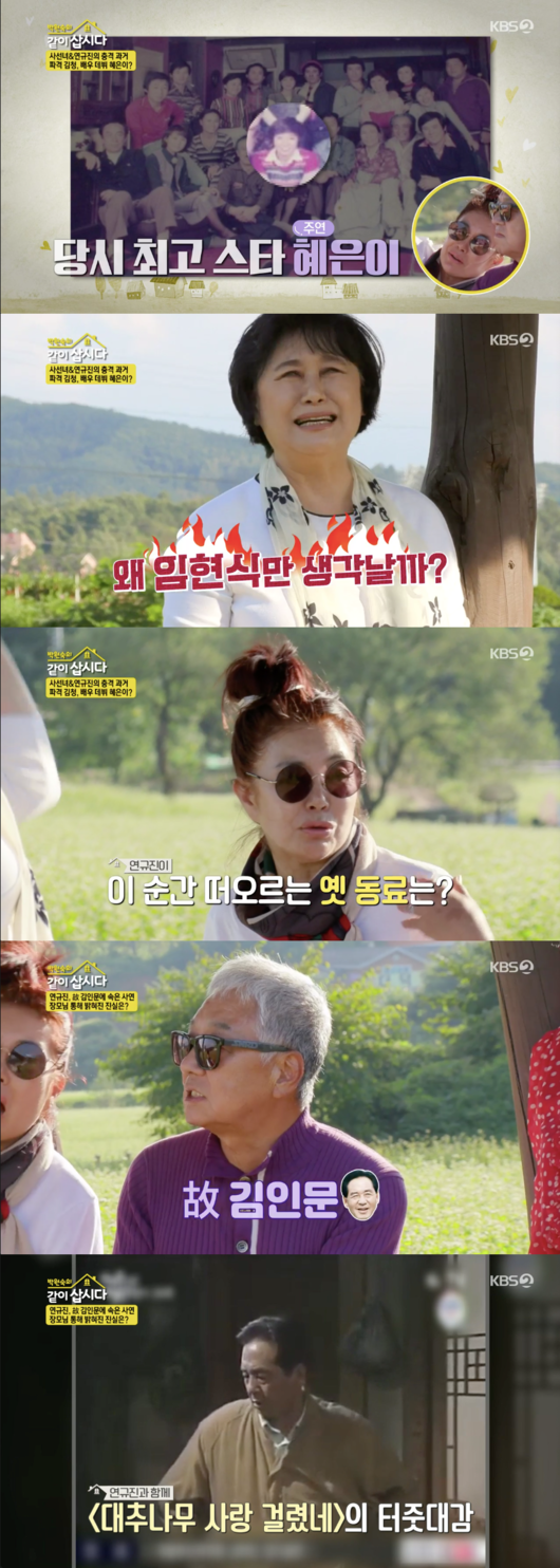 김청은 “옛날 사진 보니까 생각나는 선후배들이 많다”라고 말했다. 박원숙은 “왜 임현식밖에 생각나지 않을까”라고 말해 웃음을 자아냈다. 연규진은 “나는 김인문씨가 생각난다”라고 말하며 故김인문을 언급했다.